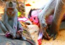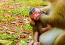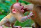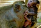 Block milk newborn baby Monkey C-r-y when oldest mom rejected milk