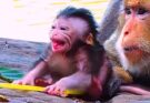 Milk… Milk.. Poor little baby monkey crying tantrum angry mum not nursing