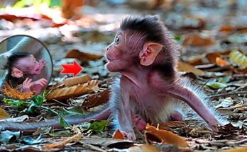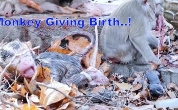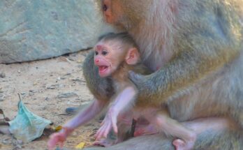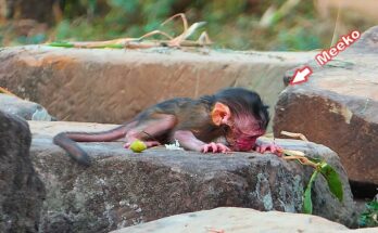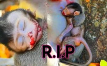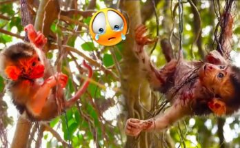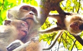 Exhausted mother monkey left her baby on the tree, the baby monkey cried and struggled Read More