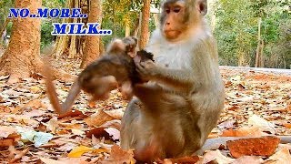 A Resilient Baby Monkey Clings Gently as Mother Manages Milk Access With Calm Patience