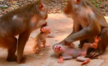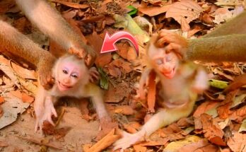 In a quiet corner of the sanctuary, little baby Levy clung tightly to the wooden branch, his tiny hands trembling. Libby, his strict and watchful mother, stood nearby with sharp, …