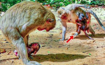 😢 Heartbreaking Scene! Little Monkey Tries to Escape After Being Pushed by Another Mom. Read More