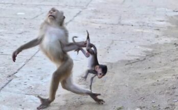 The baby monkey had a tragic end, the mother monkey dragged the baby monkey away Read More