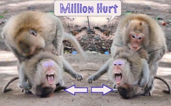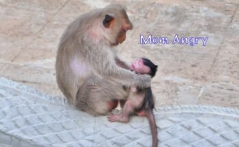 In the quiet corner of the temple yard, chaos suddenly erupted. Daniela, once the calm and gentle mother monkey, turned into a storm of fear and rage. Little baby Dana …