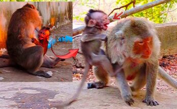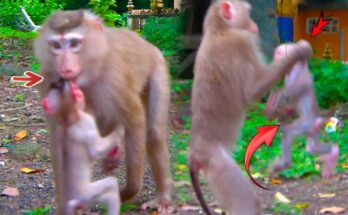 Breaking Heart!! For Poor Baby Monkey Miltan Cr.y His Mamma Not Share Food & Give Les.son Him Read More