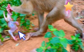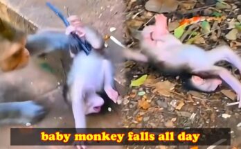 In the deep green forest, a heartbreaking scene unfolded that touched every living soul nearby. A poorly baby monkey clung desperately to his mother’s fur, crying loudly with a voice …