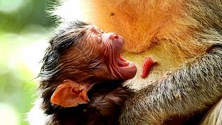 WOW…Newborn baby monkey crying loudly for the first milk