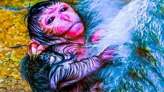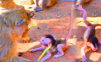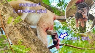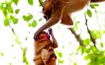 In the quiet early morning, when the forest was still wrapped in soft mist, a caring mother monkey sat gently on a strong tree branch, holding her newborn baby close …