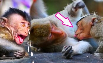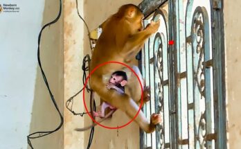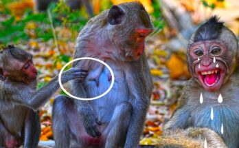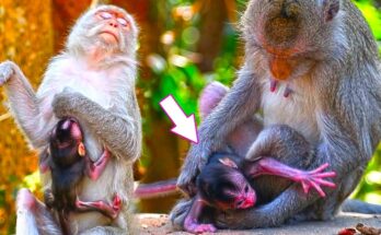 A heartbreaking scene unfolded in the forest today as a tiny newborn monkey was separated from his mother. The baby, still fragile and barely a few days old, was taken …