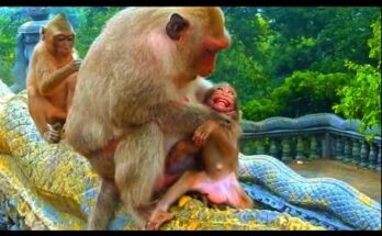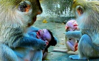 In the quiet corner of the forest, a young mother monkey tried her best to care for her newborn baby. The tiny one, full of energy and curiosity, refused to …