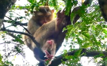 In a heart-wrenching moment captured deep in the forest, Baby Sam, a tiny newborn monkey, cries out in desperation. His high-pitched squeals echo through the trees as he reaches his …
