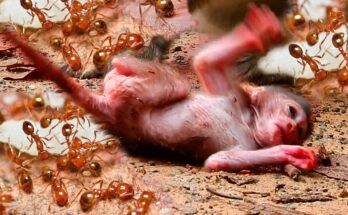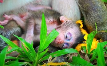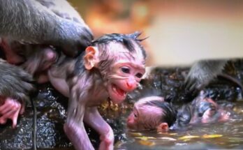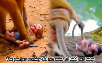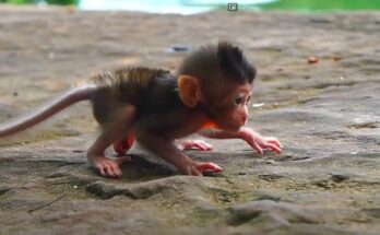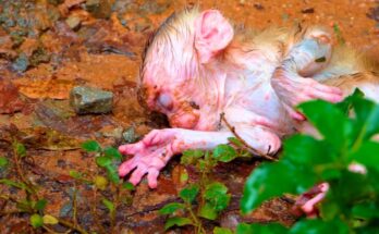 Tiny baby monkey Leo lies helplessly on the cold, wet ground, barely able to lift his fragile head. His tiny body is soaked, shivering from the chill, and his eyes …