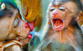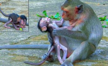 A heartbreaking scene unfolded in the forest as a tiny, poorly baby monkey cried out in desperation after being rejected by its mother. The little one, weak and visibly cold, …