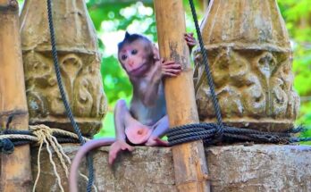 Oh No! Curious Baby Monkey Gets Stuck and Calls Mom for Help. Read More