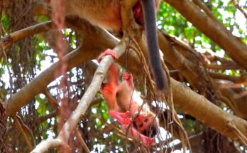 Witnessing a young mother monkey giving birth for the first time is one of the most rare and touching sights in the wild. In these special and emotional moments, nature …