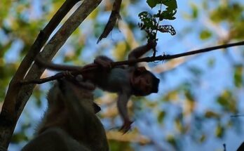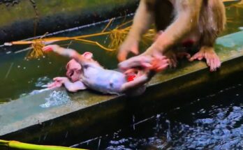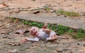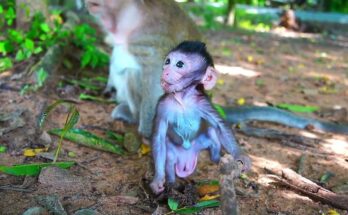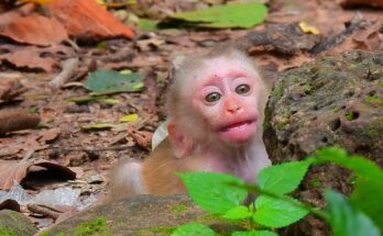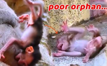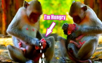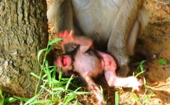 In the heart of the jungle, a heartbreaking scene unfolds—a newborn baby monkey, barely a few days old, trembles weakly as he searches for milk. His tiny body presses close …