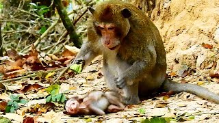 Pityful Tiny Baby monkey Matin feel crying sad when Mom take alone.
