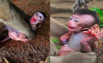 In the dense forest, where life begins with both beauty and hardship, a tiny newborn baby monkey entered the world. Weak and shivering, his little body had barely adjusted to …
