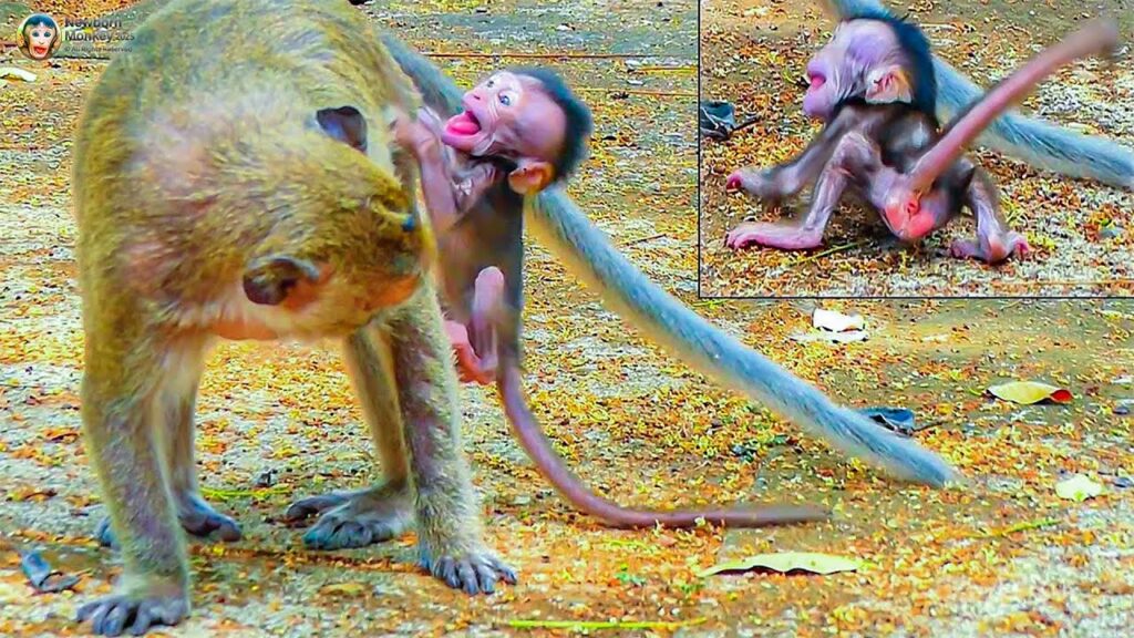 In the quiet shade of the trees, a young monkey mother holds her tiny baby, Masha, close to her chest. Her arms wrap around the little one with such gentleness, showing the natural tenderness that only a mother can give. Baby Masha, still fragile and new to the world, presses her tiny face into her mom’s fur, finding warmth and comfort in every heartbeat.