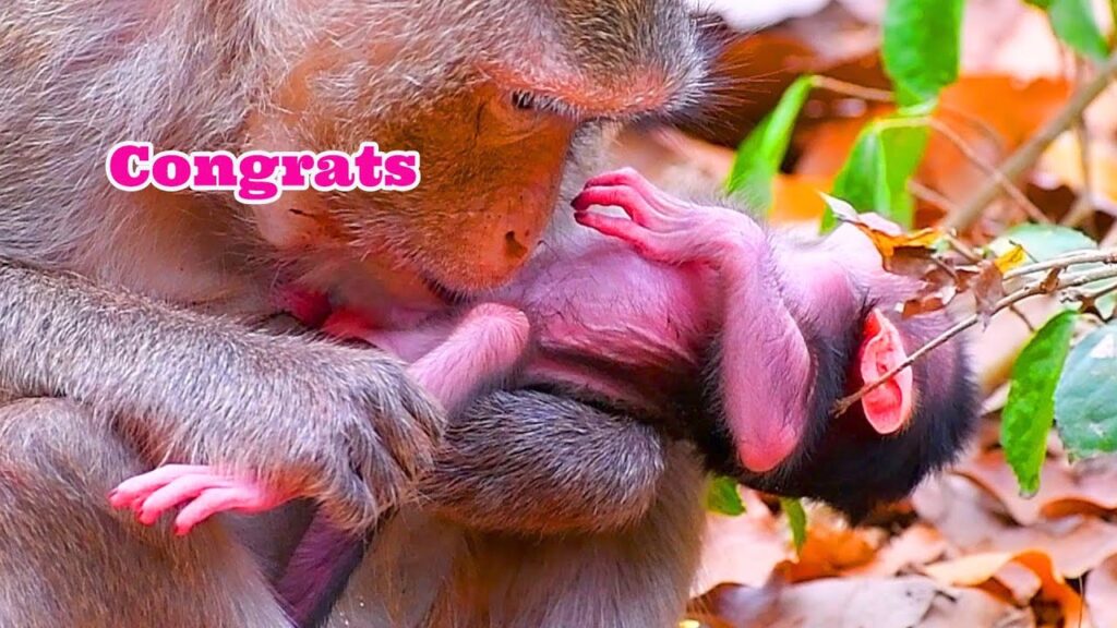 The forest was alive with soft rustling leaves and the calls of distant birds, but all attention seemed to gather around one gentle scene—an affectionate mother monkey cradling her newborn baby for the very first time. Her eyes, full of warmth and devotion, revealed a quiet determination as she tried to nurse her fragile little one. The tiny baby, still adjusting to the brightness of the world, clung tightly to her fur, seeking both comfort and survival in his mother’s embrace.