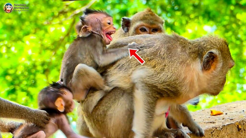In the heart of the forest, a small baby monkey clung tightly to his mother, his tiny eyes filled with longing and confusion. For days, he had relied on her warmth, comfort, and most importantly, her nourishing milk. But today was different. When he tried to nuzzle close and reach for her milk, his mother gently pushed him away, turning her attention elsewhere.