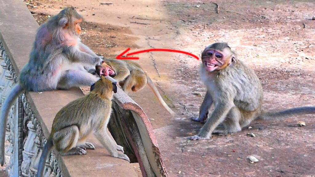 n the quiet heart of the forest, a touching yet funny scene unfolded when Old Mum Monkey Berry found herself surrounded by the endless energy of her little baby. Berry, the oldest and wisest mother in the troop, is known for her patience, but today her baby seemed to push her limits with playful mischief. The tiny one tugged at her tail, climbed onto her back without warning, and squeaked constantly for attention, testing the old mother’s calm spirit.