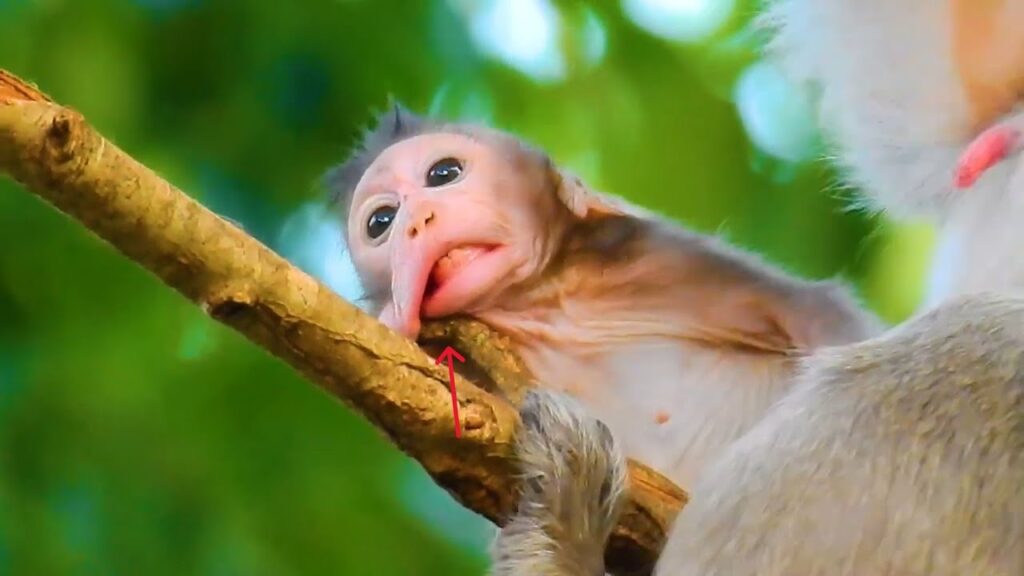 In the quiet forest, where life often seems so peaceful, a heartbreaking moment unfolded that left many feeling deep sorrow. A tiny newborn baby monkey, just starting to discover the world, faced an unexpected danger. While trying to explore its surroundings with innocent curiosity, the little one accidentally got its mouth stuck on a small branch of a tree. The poor baby struggled helplessly, unable to free itself from the tight grip of the branch.