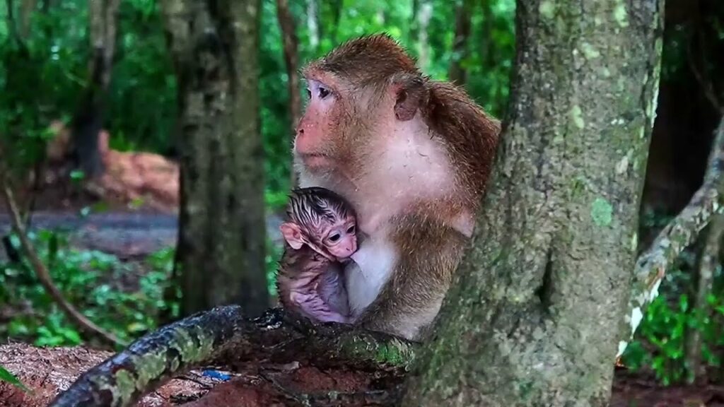 The youngest babies clung tightly to their mothers, their big eyes blinking with curiosity and confusion. Some of the older juveniles, like cheeky Miko and shy Lani, playfully chased each other through puddles before a sharp bark from a dominant female warned them to stay close. The group found temporary shelter under a dense banyan tree, where the wide canopy offered some relief from the rain.