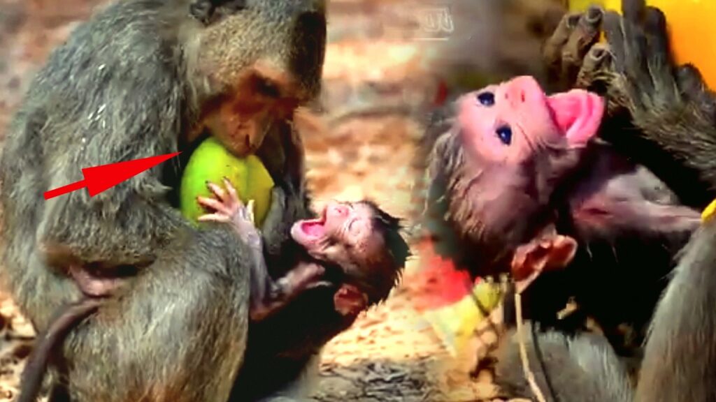 In the soft morning light of the forest, an active newborn baby monkey clings tightly to his mother, eyes wide with curiosity and need. Though only hours old, his tiny body is full of restless energy. He squirms, stretches his little fingers, and lets out small, pleading cries, eagerly searching for the one thing he knows will bring comfort—his mother’s milk.