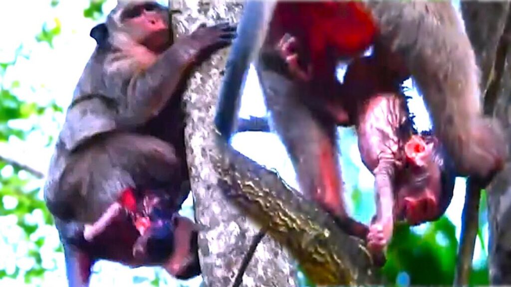 In the peaceful jungle, a beautiful moment unfolded as a mother monkey gave birth to a tiny, adorable baby. With soft fur and bright eyes, the newborn clung tightly to its mother, exploring the new world with curiosity and excitement. The mother’s love was evident in every careful movement—she groomed her baby gently, kept it close to her chest, and made sure it stayed safe at all times.