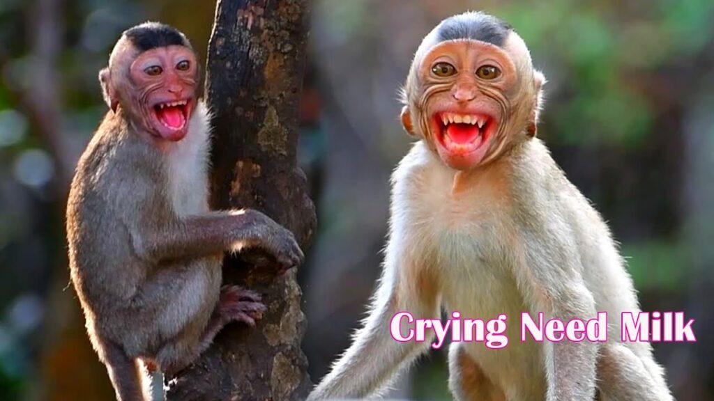 In this heart-touching footage, a tiny newborn monkey is seen crying helplessly, desperately searching for milk. With its delicate body trembling and its eyes filled with longing, the baby clings to its mother’s fur, calling out softly with high-pitched cries. The scene is both adorable and deeply emotional, as the little one expresses its simple yet urgent need for comfort and nourishment.