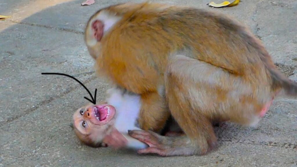 But in one funny and slightly emotional moment, the older brother accidentally made the younger one cry. While they were busily playing, the older monkey tugged too hard on his sibling’s tiny tail, not realizing it would hurt. The baby immediately let out a soft, heart-melting cry — a sound that could make anyone’s heart tremble with sympathy. His tiny face scrunched up, and tears began to form, showing how sensitive and gentle he truly was.