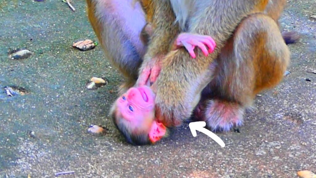 At first glance, it looked strange—almost confusing. The mother pressed her baby close, then pulled him away just slightly to study his tiny face again. She poked lightly at his ears, lifted his tiny hands, and even turned him upside down for a brief moment. The newborn clung to her fur with his tiny fingers, letting out soft chirping cries. To an outsider, it looked as though she didn’t quite know how to handle him. But to the troop elders nearby, her behavior was familiar.