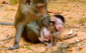 Finally, after intense effort, the tiny newborn monkey emerged, its soft fur still damp. It let out its first faint cry, a beautiful sound echoing through the trees. The mother immediately pulled the baby close, holding it tenderly to her chest. She began grooming the infant gently, cleaning it with love and care.