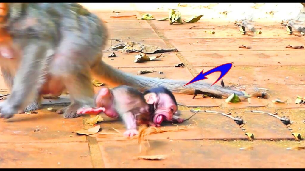 The forest always seems alive with energy, but nothing is as heartwarming as the sight of a newborn baby monkey clinging to its mother. In this amazing action video, we witness a beautiful moment where a tiny monkey, just days old, takes its very first steps into the world of adventure. Its small hands grip tightly onto mommy’s fur, while its curious eyes explore every movement around.