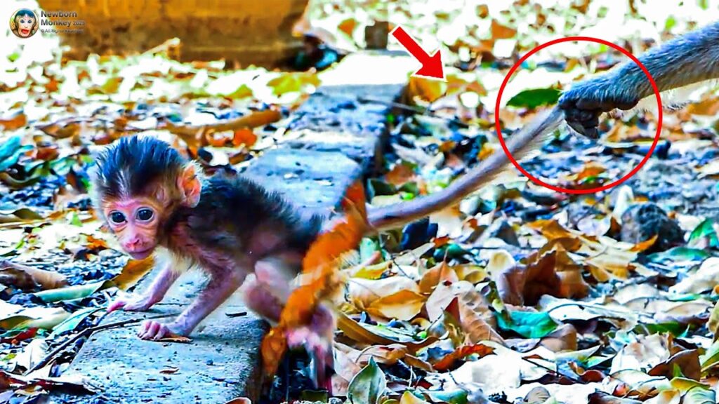 In the heart of the forest, a touching scene unfolded as a young mother monkey gently encouraged her newborn to try something new—the first shaky steps of life. With wide, curious eyes, the tiny baby clung tightly to its mother’s fur, uncertain about leaving the safety of her arms. But the mother, full of patience and love, placed the little one on the soft ground, nudging it forward with her hands as if saying, “You can do this.”