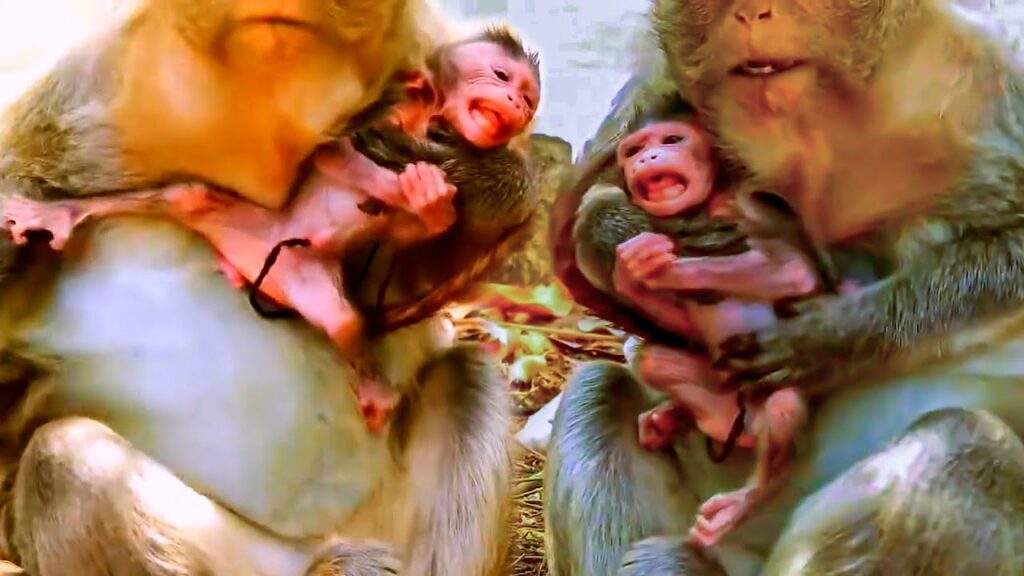 Other monkeys in the group keep a respectful distance, as if they, too, understand the sacred moment taking place. The bond forming between the mother and her newborn is immediate and unbreakable. As the baby monkey lets out its first tiny cries, the mother quickly responds by pulling it closer and offering her milk.