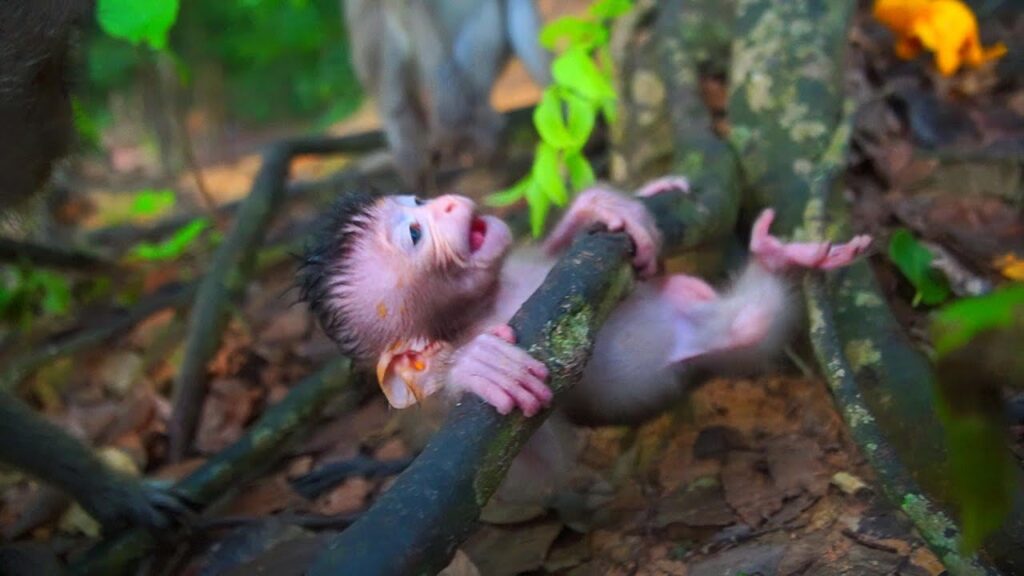 Gabby’s soft fur is barely formed, her eyes still adjusting to the light of the world. She twitches gently, letting out small, tender squeaks, her voice barely a whisper—but it speaks volumes. Every little move she makes seems to fill the forest with joy. Even the older monkeys gathered around in curiosity, watching the new life with gentle interest.