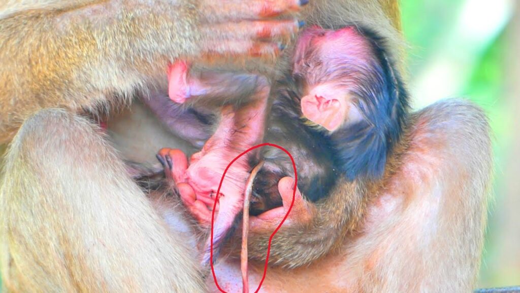 The world of wildlife never fails to deliver the most heartwarming and unforgettable moments, and this one is truly special. A brand-new life has entered the world as a mother monkey has given birth to her precious newborn. The scene is filled with tenderness and quiet celebration, as the mother gently cradles her fragile baby in her arms, holding it close to her chest with pure love and devotion.
