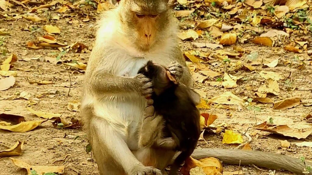In the quiet morning of the forest, little Amina looked very weak and helpless. The tiny baby monkey had just begun to understand the world around her, but everything still felt strange and confusing. Her small body trembled slightly as she moved slowly across the tree branch, searching for the one thing that always made her feel safe—her mother. 🐒🌿