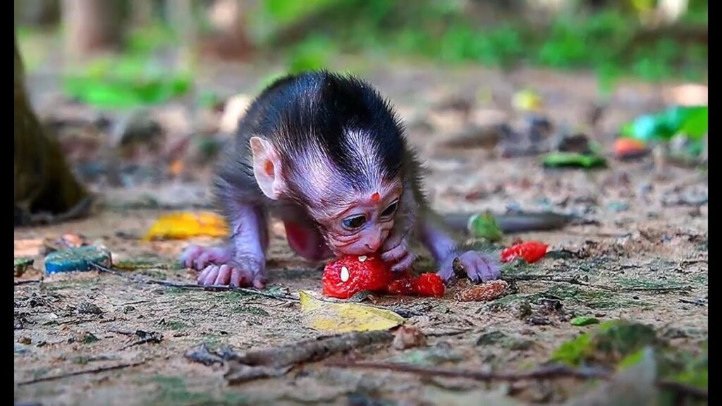 It was a warm, sunny afternoon when little Baby Monkey Braxton experienced a sweet treat that made his whole day brighter—watermelon! As his playful eyes followed his mother’s movements, he noticed her nibbling on a big slice of juicy, red watermelon. Braxton, still learning the joys of food beyond milk, watched with growing curiosity.