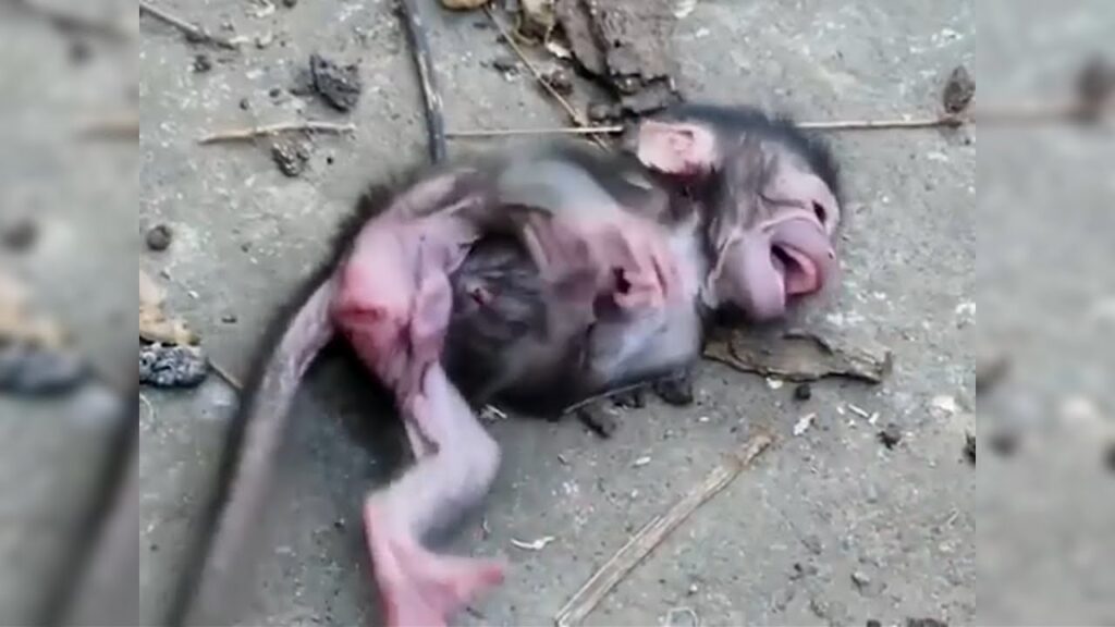 Alone and shivering, the newborn cried softly. Its tiny body was still wet, and without the mother’s body heat, it struggled to stay warm. Other monkeys passed by, some looking with curiosity, others ignoring the scene entirely. The baby curled into a tight ball, searching for something—anything—that could give it the comfort of a mother’s touch.