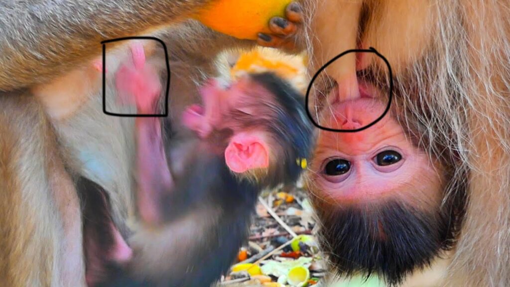 Mother monkeys often rely on touch to bond with their babies, but in this case, her hug was a bit overwhelming. The baby, still new to the world, may have been feeling pain or fear. As the crying continued, the mommy monkey finally noticed something was wrong. She gently loosened her grip and looked down at her baby with concern and confusion.