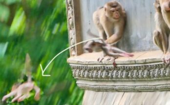In the heart of the troop, love and care often appear in the most touching ways. Little Baby Bely, fragile and still adjusting to the new world, found herself shivering in the cool breeze of the morning. Her young mother, though caring, sometimes seemed distracted, leaving the tiny one exposed and searching for the comfort she craved. It was at that moment that Berry, known for her gentle nature, stepped in with a heart full of gold.