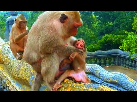 In the quiet corner of the forest, a young mother monkey tried her best to care for her newborn baby. The tiny one, full of energy and curiosity, refused to stay still in her arms. He squirmed, crawled, and tugged at her fur, wanting to explore everything. But his small size and fragile body made it dangerous to let him go too far. The mother, though patient, found it difficult to control him.