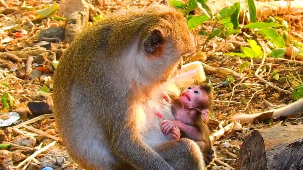Under the gray sky and soft rustle of jungle leaves, a heartbreaking scene unfolded—one that left onlookers in silent sorrow. A tiny newborn baby monkey, only a few days old, reached out to his mother with trembling hands, eyes wide with hunger and desperation. His little cries pierced the humid air as he begged for the comfort and nourishment only a mother can give. But the mother, usually the source of safety and warmth, turned away firmly.