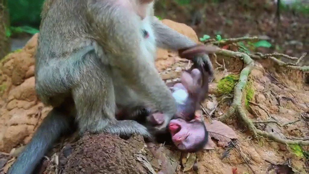 The jungle was filled with loud cries this morning as poor baby monkey Braxton faced a tough lesson from his mother. His tiny body trembled, and his eyes filled with tears as he clung tightly to a tree branch, not yet confident in his own balance. But his mommy, Brinn, had different plans — it was time for serious training.