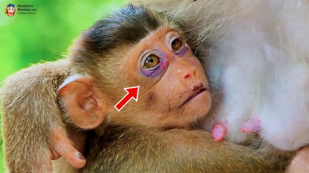 In the heart of the forest, a gentle and emotional moment unfolded between a devoted mother monkey named Sabe and her newborn baby, Sada. The early morning sun cast soft golden rays across the forest floor as Sabe gently cradled her tiny baby, who had just begun to open her eyes to the world. Despite the rough ground beneath her, Sabe made a cozy space for Sada, wrapping her arms around her child with warmth and tenderness.