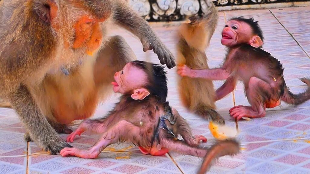 The baby monkey, still so young and needy, doesn’t understand why Mama isn’t responding. He gently tugs at her fur, leans in close, and even makes soft whimpering sounds — but Mama stays focused on her meal. The look on the baby’s face says it all: disappointment, confusion, and sadness all at once. His tiny hands reach out again, hoping for just a little attention, but the hug he longs for doesn’t come.