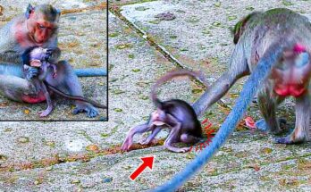 It was a heartbreaking moment in the forest when little Lily, the fragile baby monkey, lay on the ground crying weakly. Her small hands trembled, and her eyes filled with pain and confusion. No one could understand why her mother, Libby, would act so harshly toward her own child. Once known as a caring mom, Libby suddenly turned cold, ignoring Lily’s desperate cries for comfort and milk.